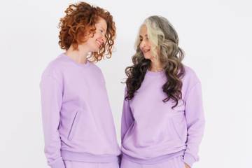 В первую одежную коллекцию марки вошли платья, костюмы, свитшоты и пуховики. Цветовая палитра: лиловый, персиковый и хаки.