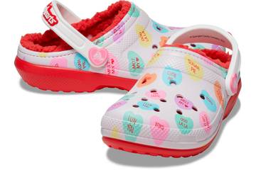 Ко Дню Святого Валентина Crocs выпустил лимитированную коллекцию сабо Sweethearts x Crocs, выполненную в стиле легендарных конфет Sweethearts. Утепленная обувь Sweethearts x Crocs в пастельных тонах и принтом в виде сердечек из конфет доступна во взрослых и детских размерах.