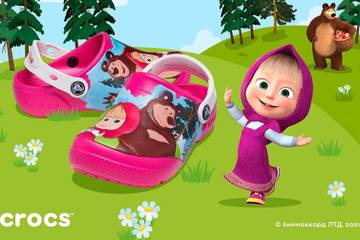 Бренд Crocs представил коллаборацию с мультсериалом «Маша и Медведь», созданным анимационной студией «Анимаккорд». В дебютный релиз вошли модели Crocs в фирменном стиле и цветовой палитре мультфильма. Это розово-фиолетовые сабо с изображением популярных героев на передней части и логотипом на пяточном ремешке.