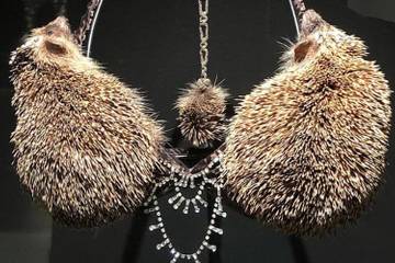 Одним из экспонатов выставки стал бюстгальтер, сделанный из чучел ежей. Милонов заявил, что это "уродство", а использование ежей в таких целях - дикость, пропагандирующая насилие в отношении ежиков. Об этом пишет "Петербургский дневник".