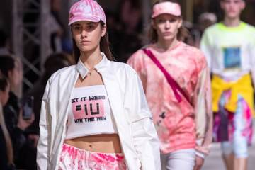ARSHA в 2019-м стал открытием года среди молодых дизайнеров. Если первую коллекцию бренд посвятил творчеству Анри Матисса, в новом сезоне мы видим совсем другую историю. Дизайнера интересуют социальные темы, а точнее хрупкие социальные группы, которые собираются по функциональному признаку. В фокусе коллекции – туристы. Это самые обычные ребята, которые бегут на солнечный пляж, собирают магнитики из путешествий и не боятся выглядеть смешно в дурацких купальных шапочках. Изюминка коллекции – комплект из куртки, шорт и шляпы, сшитый из вафельных полотенец.