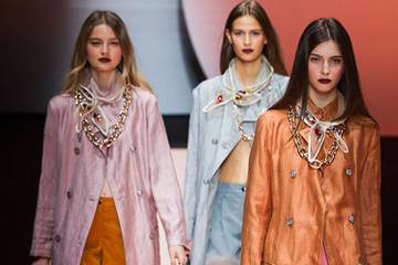Коллекция Emporio Armani, показанная в Милане, была, к слову, очень жизнерадостной. Никакой грусти и пессимизма. Прежде всего, вспоминаются смайлики на футболках. Доминирующими цветами в коллекции стали персиковый, бледно-розовый и голубой.