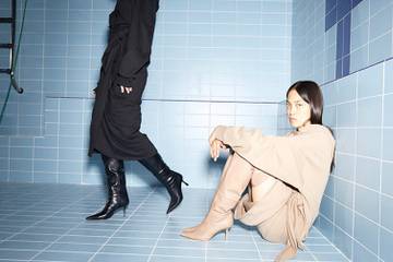 Не обошлось и без секретных приемов: бежевый цвет дал эффект прозрачности, длина ботфорт намеренно увеличилась до максимума, тем самым размыв грань между сапогами и колготками. Модели-трансформеры, к слову часть ДНК бренда Ushatava, стали изюминкой коллекции. Так, например, ботфорты, которые в одно движение руки превращаются в ботильоны и наоборот.