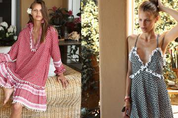 В коллекцию вошли пижамы, туники и сарафаны с вышивкой, легкие комбинезоны, платья-халаты, топы и юбки из «арафаток» с кистями по краям.