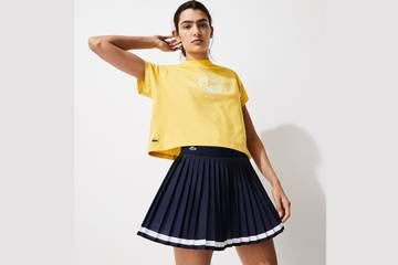 Модели для игры на корте элегантны, комфортны в носке и выполнены в соответствии с ключевыми стилистическими традициями турнира: тандем портновского мастерства и современных материалов. Сдержанные тонкие линии и жаккардовая сетка напоминают дизайн пола и крыши культового корта. При создании женской линейки дизайнеры обратили внимание на декоративные накладки и прозрачные элементы. Глубокий V-образный вырез на топах вдохновлен теннисными пуловерами, которые носил Рене Лакост. Изящные плиссированные юбки – база теннисного гардероба Lacoste – теперь асимметричны.