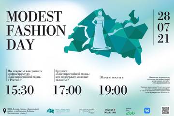 28 июля в Казани в рамках XII Международного экономического саммита «Россия – Исламский мир: KazanSummit» при поддержке Национальной палаты моды пройдет Modest Fashion Day. Мероприятие состоится на территории международного выставочного центра «Казань Экспо». Modest Fashion Day в 15:30 откроет деловая программа, а вечером, с 19:00 до 22:00, пройдут показы дизайнеров Valentin Yudashkin, Igor Gulyaev, Measure, Guzelem, Sahara, Zuhat, Su.Su, Alsu Gilmi, Eva Graffova которые представят коллекции «благопристойной моды».