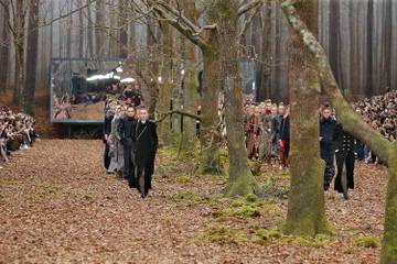 В рамках Недели моды в Париже состоялся показ Chanel осень-зима 2018/19. Шоу прошло во дворце Grand Palais, в этот пространство было стилизовано под осенний лес с настоящими деревьями и опавшей листвой.