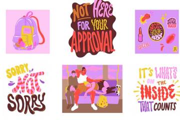 Серия состоит из пяти иллюстраций, выражающих эту идею. На одной из них две девушки без извинений занимают место в поезде. На другой мы видим содержимое рюкзака с предметами, которые обычно хранятся в прикроватной тумбочке. Изображения дополнены тремя смелыми заявлениями: «Я не нуждаюсь в вашем одобрении» (Not here for your approval), «Важно то, что внутри» (It’s what’s on the inside that counts) и «Жаль, но мне не жаль» (Sorry not sorry).