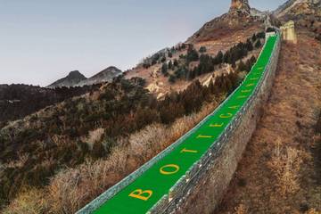 Гигантский билборд с названием бренда Bottega Veneta появился на Великой Китайской стене, сообщает Designboom.