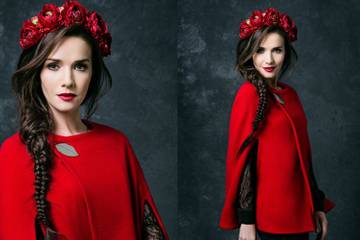 Доминирующим в коллекции стал красный цвет, символизирующий страстность и темпераментность российского характера. В линейке представлены не только вечерние платья в пол, но и практичные вещи на каждый день: джинсы-скинни, уютные свитера, клетчатые рубашки и забавные клатчи в виде матрешек и красных губ.