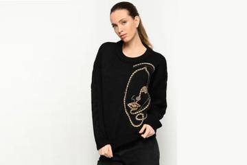 Экологичная шерстяная пряжа придает особую ценность свитерам с круглой горловиной, женственные рукава которых украшены «косами», а передняя сторона – вышивкой, изображающей женские лица. Партнерство между Pinko и Maglidee будет продолжено с осенней коллекцией 2020, в которую будут добавлены еще два свитера - один с V-образным вырезом и другой под горло.