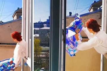 Российский бренд Radical Chic запустил флешмоб – "Платок из окна". Цель - украсить пустые улицы в карантин.