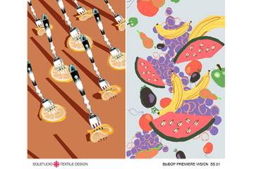 В этом сезоне Solstudio Textile Design по-прежнему остается одной из самых цитируемых: семь работ размещены на стенде и одна опубликована в главном каталоге выставки. Рисунками студии проиллюстрированы тренды Hyper-realism/Гиперреализм, Nourishing plants/Съедобные растения, Pictorial strokes/Художественный штрих, Simplified geometries/Упрощенная геометрия и Modern ethnic/Современная этника.