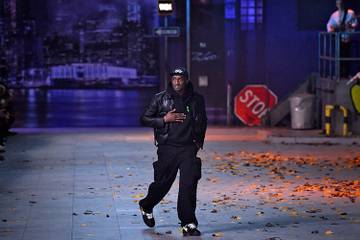 Но за основу мудборда Абло взял стиль Майкла Джексона. Текстильные ордена, укороченные куртки, инкрустированные стразами перчатки и юбки с американским флагом, отсылающие к выступлению «United We Stand» в 2001 году, — почти в каждом образе осенне-зимнего шоу Louis Vuitton было что-то от короля мировой поп-сцены. Но большинство вещей — например, рубашки с погонами, жилеты с нагрудными карманами, прозрачные сумки с монограммой и пронумерованные сундуки — повторили дебютную коллекцию Вирджила Абло, пишет Собака.ru.