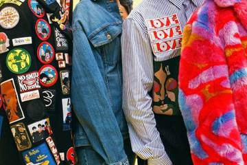 Так родился основной мотив коллекции — вышитый на моделях из трикотажа и джерси слоган “All Together Now” на разных языках. Фразы “all you need is love” и “love, love, love” украшают верхнюю одежду и рубашки. Среди эффектных деталей - яркие нашивки, графичные принты и насыщенная цветовая палитра, а также символ желтой субмарины.