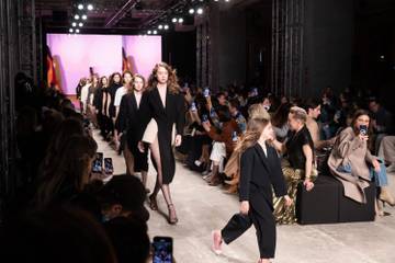 Дизайнер представила коллекцию верхней одежды: оверсайз-пальто сложного кроя, прямые пальто со спущенной линией плеча, жилеты и худи удачно подчеркивали фигуру, а детали вроде карманов с пайетками приковывали взгляд. В палитру коллекции вошли оттенки красного, белый, хаки и camel.