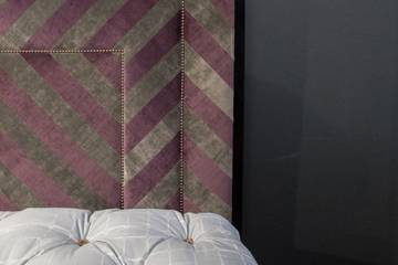 В качестве основного рисунка дизайнер выбрал полоску. Характерной чертой кровати, которая была представлена в Москве, стал полосатый рисунок с чередованием персидского красного и классического нейтрального цветов. Дополняет основной материал обивочная ткань из бархата от Mark Alexander. Завершает дизайн замысловатая отделка из гвоздиков, каждый из которых закреплен на своем месте вручную, согласно инструкции мэтра.