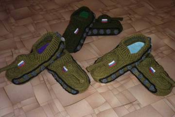 Kак рассказала НГС.ОМСК автор тапочек, необычную домашнюю обувь она вяжет крючком из шерсти, обувь фиксируется сзади шнурком. Впереди тапочки украшены люком и дулом «танка». Рукоделием женщина занимается уже давно. Сейчас она вяжет, в основном, когда ждет с тренировок 9-летнюю дочь-гимнастку. Стоимость тапок составляет 800 рублей, и судя по всему, заказов на обувь у домохозяйки в последнее время прибавилось.