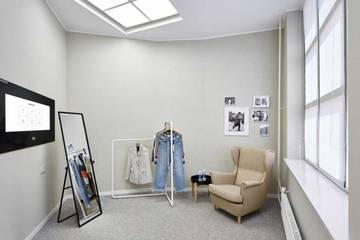 Во время ожидания можно посмотреть в зале образцы одежды, обуви и аксессуаров — в мини-корнерах и мультибрендовых зонах универмага представлено более 350 популярных международных брендов.