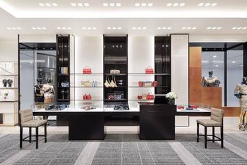 На входе в бутик расположена зона аксессуаров, где представлены сумки, кожаные изделия, бижутерия, шарфы и очки. Слева от нее находятся ювелирные украшения и часы, в дальнем правом углу — обувной отдел, а за ним — два зала с коллекцией prêt-à-porter. На втором этаже бутика находится VIP-салон, пишет Buro.