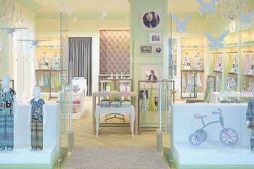 Заместитель генерального директора Project Line Екатерина Агатова: «В оформлении магазинов хотелось использовать приемы современной французской классики с геометрической раскладкой фигурных молдингов по стенам и установкой огромных карнизов по потолкам. Поскольку магазин проектировался для детей, мы хотели вдохнуть в него атмосферу сказочного леса, лета, добра и радости. Поэтому цветовая гамма была выбрана в зеленых и желто-бежевых тонах, вдоль витрин были развешены бабочки, а в багетных рамах выставлены холсты, выполненные в нежной акварели с изображением птиц, деревьев, детей и цветов. Колонна на фасаде, обыгранная картиной сказочного дерева, приглашает маленьких посетителей в волшебный мир. Примерочные кабины оборудованы мониторами».