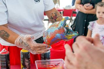 Рядом работала станция кастомайзинга, где предлагалось оживить любые старые вещи — нанести рисунок или сделать аппликацию.