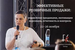 С 22 по 26 ноября Fashion Consulting Group приглашает на офлайн курс "Эффективные розничные продажи: управление продажами, мотивация персонала, отчетность и контроль"