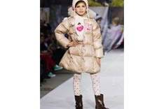 В коллекции представлены все атрибуты детского гардероба: куртки, пальто, цветные колготки, юбки и платья для девочек, костюмы, цветные толстовки и брюки для мальчиков; джинсы, украшенные вышивкой, аксессуары в форме героев японских мультфильмов.